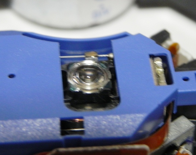 4.ピックアップを調整する ※ディスクが完全に読み込めない場合のみ。再生中に不具合がある等の場合は対象外と考えてください。 ピックアップ出力を調整します。 レンズ周辺にあるピックアップ調整ボリュームを精密ドライバーで回すことで調整することができます。 左の写真のネジのようなものが調整ボリュームです。 ちなみに、写真の機種はCD用とDVD用でボリュームが2つ並んでいます。 これを精密ドライバーで1°くらい回します。 回したら、通常の手順でディスクを再生し、ディスクが回転するか確認をします。 もし、正しい出力に近づいていれば、ディスクの回転が大きくなり読み込み動作に近づきます。逆に位置のずれが大きくなるとディスクの回転が小さくなり動作がすぐになくなります。 このディスクの回転を頼りに、正しい出力に調整され正常に読み込むようになるまでこれを繰り返します。 ディスクが読み込めたら修理完了です。 ※出力が大きくなりすぎると壊れて再起不能になることがあるので、ボリュームを計30°くらい回したら、元の位置に戻して再度、やり直しましょう。 |